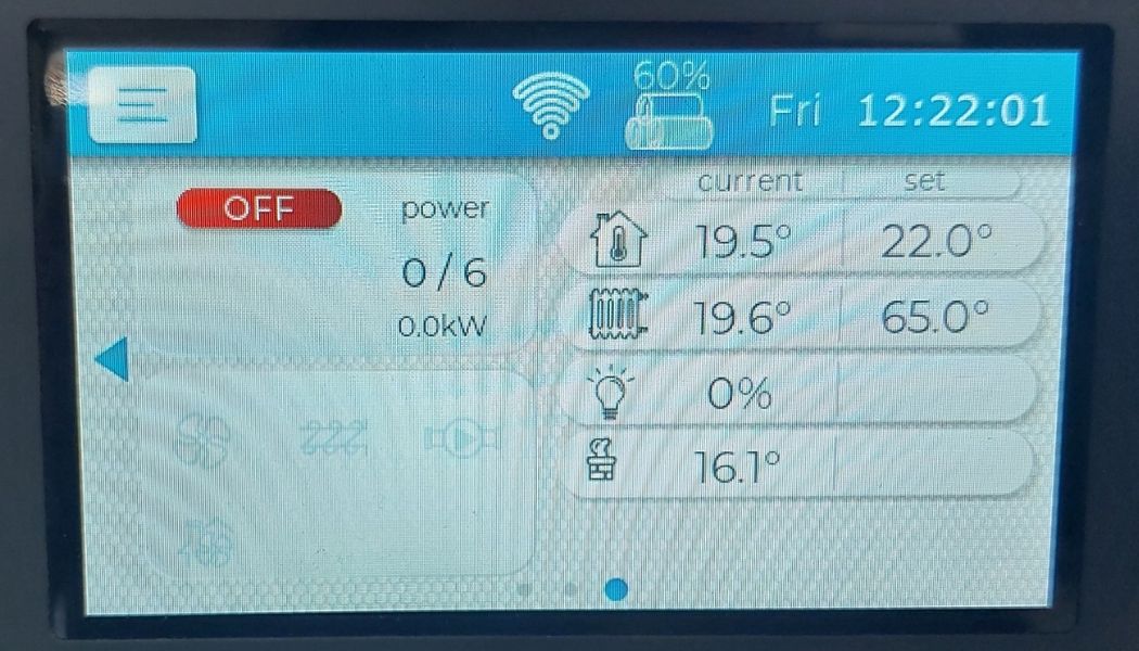 Sofia je opremljena s sodobnim barvnim krmilnikom TOUCHscreen, s katerim enostavno vnesete vse želene nastavitve in preberete različne podatke + celotno zgodovino napak, dogodkov in uporabniških dejanj.